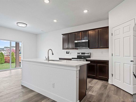 Beautiful 2-story home boasts a spacious and well-thought-out design with 5 bedrooms, main floor study, upper level loft, 3 bathrooms, and a 3-car garage. Stunning kitchen with quartz countertops, 42” cabinets, stainless steel appliances, large island and generous pantry. Kitchen opens to the great room with plenty of space for living, dining and entertainment. Outside, you’ll be impressed with the wrap around patio featuring a built-in BBQ, stone fireplace as well as a stone firepit with a lovely seating wall. The yard is fully landscaped and has an abundance of trees and shrubs. Upstairs, you will find 4 bedrooms, 2 baths, a loft and laundry. The primary suite boasts a generously sized retreat, with private bath featuring a large walk-in shower, dual sinks and a generous walk-in closet. The house is equipped with central air, a solar system and security system. Located in the vibrant community of High Point DIA near the airport and adjacent to the prestigious Gaylord Resort. Community amenities include: pool and playground.