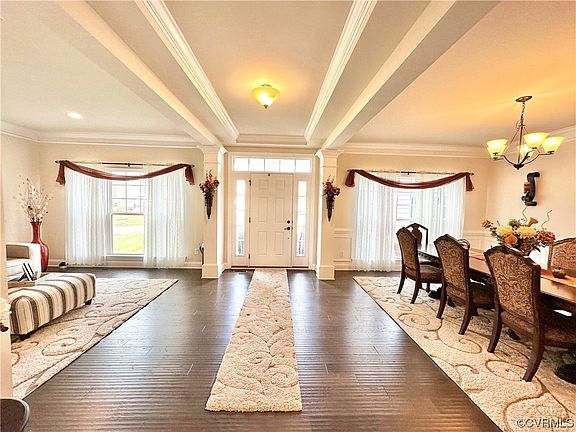 This 2015 custom home blends luxury and extravagance in over 6,700 sf. As you enter, the living room and dedicated dining invites endless possibilities for hosting. A cozy family room featuring 10 ft tray ceilings, dual-facing fireplace to your covered deck, and opened concept to the custom kitchen transforms this house into a home. Expansive granite countertops, butler's pantry, walk-in pantry and breakfast area highlight this premier kitchen. First floor home office includes French doors. Choose between two staircases as you make your way upstairs. In this primary bedroom, live like you're at a resort with tray ceilings, fireplace, his & hers WIC, and a step-down sitting room. The ensuite bath includes dual shower heads, spacious tub, and separate sink areas. The custom built out guest suite includes a full bath and its own climate control. The third bedroom includes ensuite bath and the fourth features WIC. The laundry room features granite countertops, storage, and utility sink. Finally, head to the daylight basement for endless activities. A living room, kitchenette & bar, bedroom, full bath, wired home theater, flex space, and unfinished storage fill over 2,000 sf.