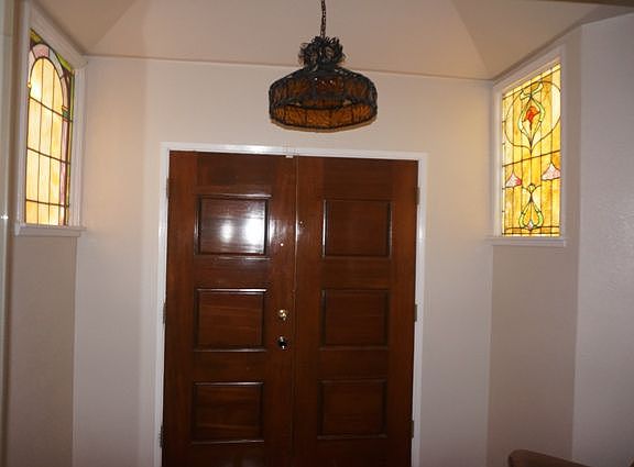 Home originally built as a Church. Vestibule with stain glass windows, Large stained glass window in Living Room, High Ceilings, Paver Tile flooring throughout, Spacious Remodeled and Updated kitchen with smooth surface counters and replaced appliances, Two bedrooms share bath with garden tub, All bedrooms have access to side yard, Master has large closet with mirrored doors and spa room off Master Bath, Den with Glass French Doors leading to inviting private patio area, Inside Utility room with lots of storage cabinetry, Dual Cooling, Garage has two roll up doors, Owner has over $56,000 in upgrades and improvements. House has Class and Style you are sure to be impressed.