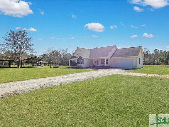 This stunning Pembroke property boasts just over 6 acres. located 1 mile from I-16. Step inside the charming 3-bed, 2-bath ranch house and be greeted by the warm glow of natural light in the dining room, situated just off the foyer. The kitchen features a convenient breakfast bar and a cozy breakfast area with bay windows – the ideal spot to enjoy your morning coffee. The living room is adorned with built-in shelves surrounding a cozy gas fireplace. Flow seamlessly from the living room into the expansive sunroom. Retreat to the primary bedroom with an ensuite bathroom equipped with a double vanity, soothing soaking tub, separate shower, and a spacious walk-in closet. As you step outside, the vast backyard awaits, fully fenced for privacy and security. A separate large shed provides ample storage, while an open barn, pole barn, tractor shed, chicken coop and pond add to the versatility of the land.