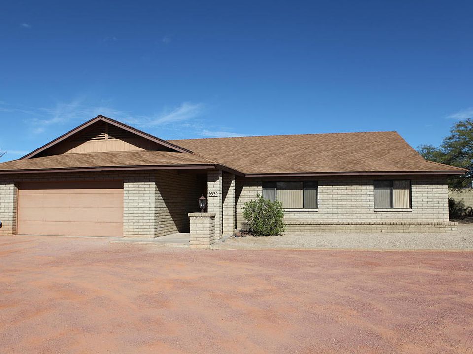 Single level brick ranch on on over 1 acre fenced property with no HOA. This fantastic site has a well built home with 2 car attached garage PLUS separate garage/workshop with 2+ stalls and 1/2 bath, perfect for the hobbyist! RV covered parking with septic hookup for your RVing guests. Newer roof, A/C, hot water heater and carpeting. This is a beautiful natural desert setting with mature mesquite trees, yet short drive to the 101. This property has so many possibilities you must have a look.
