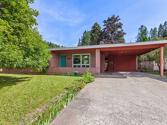 All brick mid century home in a quiet neighborhood in the south hill area. Open floor plan in the living room and dining have large windows with hardwood floors and a wood burning fireplace. Level fenced backyard with deck and several mature fruit trees, lilac trees and bountiful garden beds. Attached carport with storage space could also be converted into a fully enclosed garage. Within walking distance to everything!