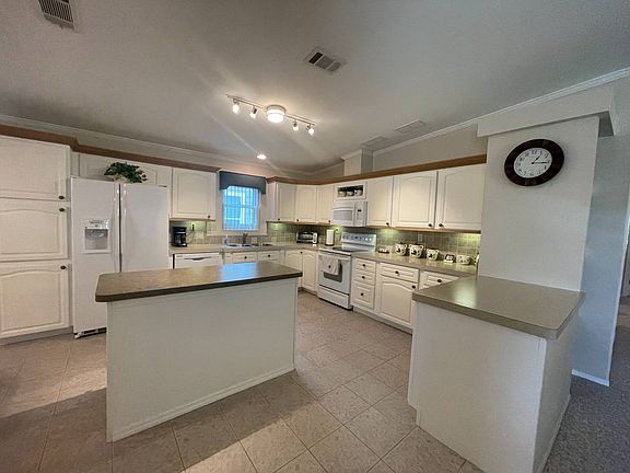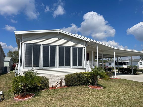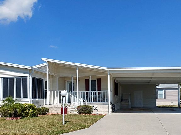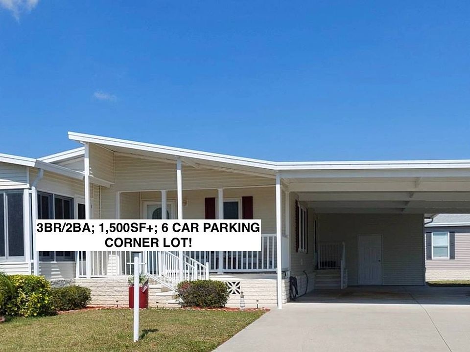 6526 Lacey Lane Ellenton FL 34222 Ridgewood Estates 55+ Gated Community, Pet Friendly This home is on a rented/leased lot. This 2004 3BR/2BA Palm Harbor model is located on a corner lot in a desirable community with over 1,500SF for living, dining and entertaining. There are multiple recent upgrades and improvements! The carport is very large and can accommodate four to six cars easily. It comes beautifully furnished and turnkey! All the windows in the home have been replaced and updated with thermal pane! There are vaulted ceilings, sheetrock walls and new stainless ceiling fans throughout. The flooring is luxury vinyl, ceramic tile, and new high-grade carpet. The interior has been finished with fresh custom paint in all rooms. There are also several new lighting additions throughout the home. The central AC is a 2019. The roof and vents are also new (2021). There is an inside laundry with a new (2023) washer and newer dryer included in the sale. This home is ready for you to move today! There is a 10'x14' front-set, fully enclosed and separately cooled lanai. The lanai has all new screened thermal pane windows, new ceiling fan and high-end luxury vinyl flooring. There is also a new LED tree light. The very large eat-in kitchen comes with ceramic tile and has matching white appliances, refrigerator, dishwasher, microwave, and stove. There is new garbage disposal. There are plenty of custom cabinets and counter space. The sizable living room has high-end carpet, some built-in storage and valance windows with vertical blinds. The newer furniture compliments this great living space. The bedrooms are all carpeted with new high-end carpet. The large master bedroom has ceiling fan, walk-in closet and ensuite master bath attached. The master bath comes with a single sink vanity, garden tub and a separate walk-in shower. The hall bath has a single sink vanity and a shower/tub combo. Lot rent is $919 ($861 market rent +$58.81 tax passthru). The monthly lot fees includes lawn, tennis, pond, 2 pools, 2 clubhouses, more community amenities, and many community activities. Ridgewood Estates community management defines final lot rent. Ridgewood Estates is a well-maintained GATED community with 2 heated pools, a hot tub, shuffleboard & tennis courts, horseshoe pit, pool side club house with a library, fitness center & billiards room. There is a large "event" center used for many HOA sponsored events. Cards, Bingo, Chair Volleyball, water aerobics.... just to name a few :-) Florida MH Sales, LLC cannot guarantee or warrant the accuracy of this information, measurements, or condition of any property. Measurements are approximate. All homes are sold "as is" and a personal or professional inspection is encouraged. Lot rent is set by the community and is subject to change. All buyers must be approved by the community prior to closing on a negotiated sale contract.