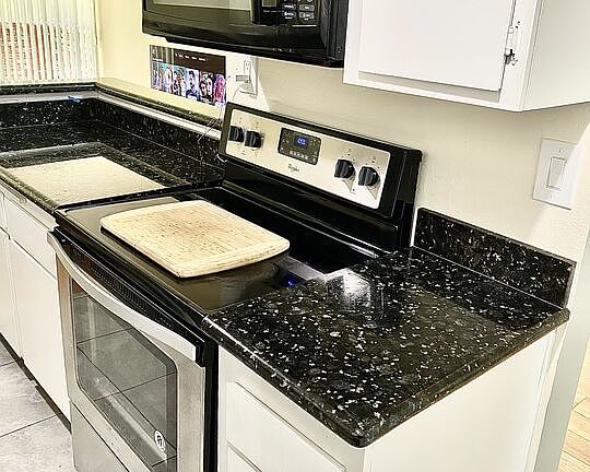 Granite counter topsCovered back patioUpdated kitchenBuilt-in microwaveDouble sink