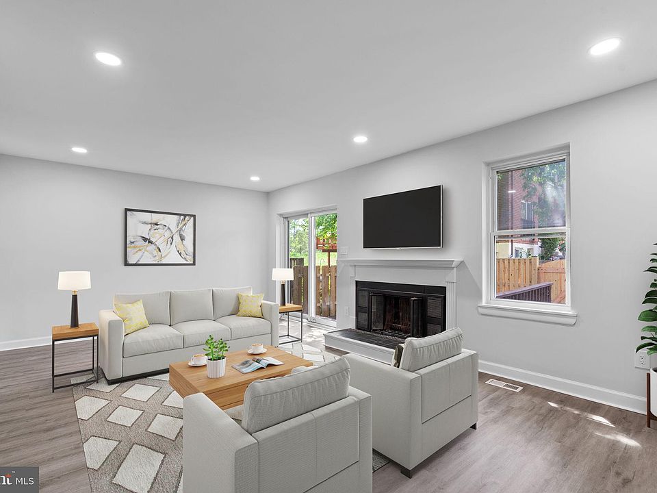 Sited on a quiet street in the Village of Own Brown, is this fully renovated townhome offering 3 levels with over 2,442 sqft, a new roof, and new HVAC. Fresh interiors invite you inside to find an eat-in front kitchen featuring all new Shaker style cabinetry, quartz counters, subway tile backsplash stainless steel appliances, new flooring, and breakfast table space. Built for comfort and entertainment alike, this home boasts an open dining room with a step-down to a light-filled living room with an ambient wood burning fireplace and glass slider access to a tiered deck and fenced backyard. Owner’s suite presents new carpeting, a walk-in closet, and a private bath with a step in shower. An excellent finish to this home is the lower level showcasing a rec room with new flooring, a utility and storage room, and a full bath.
