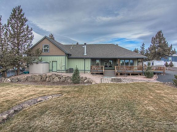 Exceptional location between Bend & Redmond! Beautiful Custom Home w/many upgrades. Gorgeous mstr bath incl elec heated floors, speakers thru-out home, hot water plumbed to garage are just a few. Upstairs is 4th BD & Bonus, w/Main Floor living. Gourmet Kitchen incl nice 4-burner gas cook top, Dbl ovens & solid granite counter tops. Jack & Jill bathrm. Stunning covered back porch w/fabulous morning sunshine to enjoy view of your horses below. Newer Jotul Woodstove insert. Full RV hookups, room for your toys.