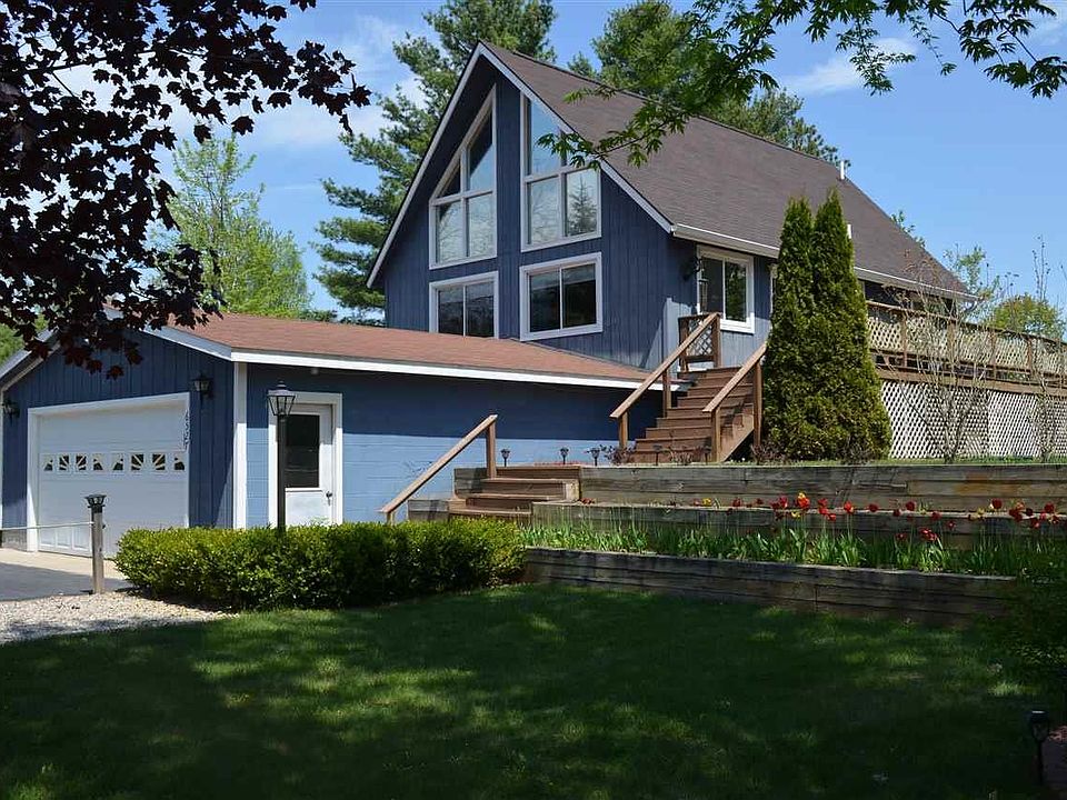 Welcome home to this well built Chalet home with cathedral ceilings, a roomy kitchen with ceramic tile flooring, and knotty pine throughout the main living area. Upstairs loft with private 1/2 bath, walkout basement with an extra 11 x 11 room in lower level for storage, studio, office space, offering lots of possibilities. Oversized 2 car garage, large deck, and nicely landscaped grounds. Just minutes to Elk Rapids and close to Elk Lake and Birch Lake.