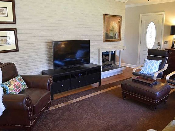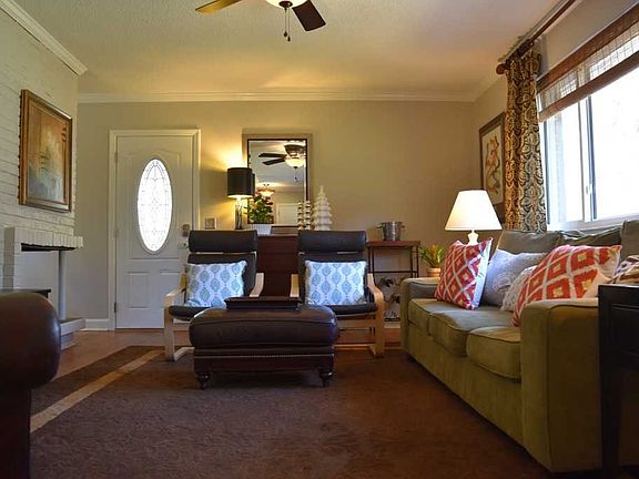Cute, updated, and move-in ready! This all brick home is on a great corner lot & zoned for Satchel Ford. Inviting front porch leads to charming living room with gas log fireplace & crown molding. Beautifully updated kitchen with granite, stainless appliances including gas range, & white refinished cabinets. The bright kitchen opens to the dining room & office with double-sided fireplace. Spacious master bedroom with newly renovated private bath. Huge 16x27 deck perfect for entertaining and grilling out this summer. 12x16 workshop with electricity. Plenty of recent updates including renovated master bath, fresh paint interior & exterior, new interior doors, new dishwasher, new windows back of house, refinished kitchen cabinets, & more!