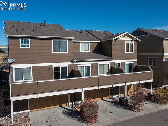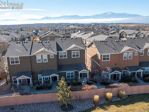 Beautiful move in ready townhouse located in the heart of the growing location of Dublin and Powers! As you walk in the front door you will notice the tall open ceilings and flexible floor plan offering many living areas with spaces to work from home during the day, and entertain during the night! The main level has an open large kitchen with a nice sized family room, a dry bar or coffee bar for additional storage, and a walk out to a huge composite deck boasting amazing Pikes Peak views! Upstairs you find a generous master suite with attached 5 piece bath and walk in closet, 2 more secondary bedrooms with a large full bathroom, and additional hallway cabinets and countertops for linens and storage. The oversized 2 car garage, AC for the summer days, proximity to Powers, restaurants, breweries, coffee shops and more make this a can't miss opportunity!