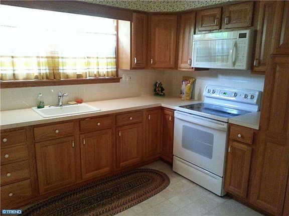 End row ranch with upgraded kitchen and upgraded bath. Kitchen has lots of cabinet and counter space. Newer refrigerator. Living room has fireplace with raised hearth. Built in cabinets in dining room for extra storage space. Large master bedroom with plenty of closet space. Property is fenced in with patio and a deck, backs up to woods to provide a bit more privacy. Home is close to schools and shopping.