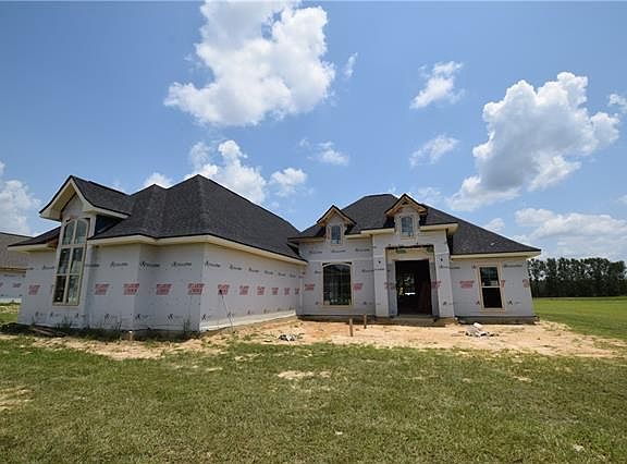 Fabulous new construction 4 bedroom, 3.5 bath custom home situated on 1.2/acre lot in Dream Home Subdivision located in the Ragley area. This location is just off Hwy 171 minutes from Moss Bluff but has a serene country setting. This 1.5 story home features open & split floor plan perfect for entertaining with upstairs bonus room with full bath. Beautiful living room features tall ceilings with crown molding and is open to kitchen & dining areas. Amazing kitchen features abundance of beautiful custom cabinets, tile back splash, pot filler, walk-in pantry, island w/eat-in-bar, pantry, granite counter tops & stainless appliances including refrigerator. Formal dining and breakfast areas perfect for a large family. Large breathtaking master suite boasts tray ceiling, oversized walk-in closet with built-ins, double vanities, granite counters, custom tile shower & soaking tub. Spacious laundry room with extra storage. Mudroom with built-in locker area. All bedrooms are spacious w/nice size closets. Large covered patio with outdoor kitchen area featuring granite counter tops and sink. 2 car garage with extra storage room. Bluetooth surround sound system installed. This home is loaded with extras and has the WOW factor. Home will be professionally landscaped. Flood Zone X so no flood insurance required by mortgage & 100% rural financing. Completion December 2021