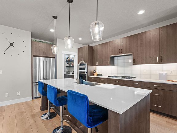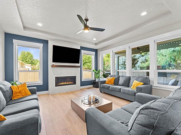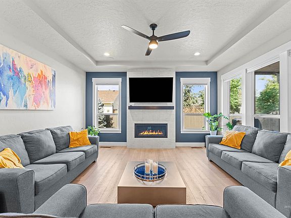 Tucked at the very back of a serene cul-de-sac on a premium corner lot - A flowing and open main living area is complimented by a number of tall windows delivering an abundance of natural light. An expansive kitchen featuring a gourmet butler's pantry is adjoined by a living room with tray ceilings and an integrated 6 speaker Polk audio system. Tech room/office conveniently located on the main level, with guest bedrooms secluded upstairs. Accessed directly off of the living room is an inviting covered patio built with entertaining in mind, with roll up shades, and a custom built outdoor TV setup. Mature evergreen trees buffer the side neighbors for an additional feeling of seclusion and privacy, creating a forest like setting. Garage features custom fitted cabinetry, and worktop bench, providing ample storage space. This property is conveniently located an almost equal distance to downtown Boise & Eagle alike. Moments from Pierce Park Greens and on the doorstep of hundreds of miles of Boise foothill trails.