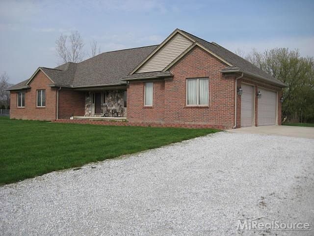 Custom built, full masonry, broad-front ranch! Large country kitchen with island. Bay door-wall, hardwood floors. Huge great room with stone fireplace and mantel. Cathedral ceilings and fans. Master bedroom with jack and jill sinks with bay window, Jacuzzi tub, and shower stall. 165X622 lot that backs to the hundred acre woods. 3.5 side turned garage with service door. Dishwasher and stove included. Energy efficient, Anderson Windows, nine foot unfinished basement. Covered front porch. Imme poss