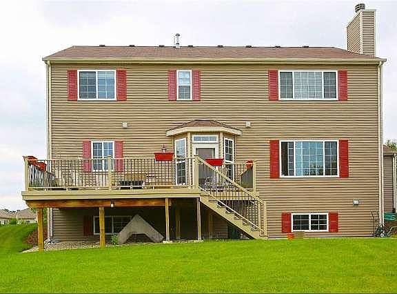 Composite deck and concrete patio overlook gorgeous pond with fountain. This 3,000 sq ft, two story maintenance free four bedroom residence offers 9' ceilings, spacious great-room area opening to maple cabineted eat-in kitchen, fireplaced family room, office plus spacious second floor loft area. Full basement is extra deep with large windows, stubbed in bath and offers endless possibilities. Underground sprinklers. This home is offered at an extremely competitive price for immediate sale and occupancy.