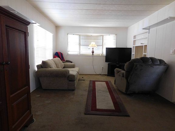 Come and check this 1B 1B Singlewide mobile home. Partially furnished with updated kitchen 5-6 years ago. AC replaced in 2017. Screened in sunroom to watch the sun rise or set with the usual daily breeze. Small storage shed with room to add in washer & dryer hook ups for your very own appliances. If not ready just yet for those, there is an onsite laundry facility at the clubhouse while you take a dip in the year round pool or play a game of pool insiden the clubhouse.