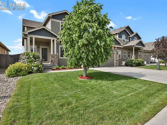 Immaculate home with numerous quality upgrades throughout and just minutes to Peterson & Schriever Air Force Bases! Welcome to this immaculate 3-bedroom, 3-bathroom home offering 3,384 sq. ft. of well-designed living space in a peaceful neighborhood just minutes to military bases, Colorado Springs Airport, and I-25. Whether you're military, a frequent traveler, or simply value convenience, this location offers easy access to all that Colorado Springs has to offer. Just one house away from a community playground with benches, picnic tables, and scenic walking trails, this home is ideal for families and those who love the outdoors. The professionally landscaped, fully fenced yard features a large 37x11 concrete patio with ambient lighting, perfect for hosting guests, outdoor dining, or unwinding under the stars. Inside, you'll find a warm and inviting atmosphere with a main-level primary suite complete with a luxurious 5-piece bath. The open-concept kitchen includes a breakfast bar, wood floors, ample cabinetry, and generous counter space, ideal for both everyday living and entertaining. The living room boasts soaring ceilings, custom built-ins, and a cozy gas fireplace that anchors the space beautifully. Upstairs, a versatile loft provides the perfect space for a home office or playroom, while two spacious bedrooms and a full bath offer comfort and privacy for family or guests. The large unfinished basement is full of potential, ready to become your next home gym, theater, or additional living space. Additional upgrades include central A/C, fully finished garage with 50-Amp Level 2 Electric Vehicle (EV) Charger, a brand-new water heater, water softener, humidifier, radon mitigation system, and a security system for peace of mind. From morning coffee on the charming covered front porch to evening relaxation on the private backyard patio backing to open space, this home offers the perfect balance of comfort, function, and community.