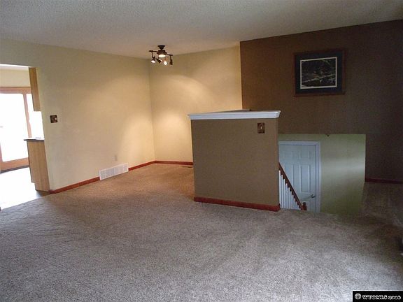 Call Listing Agent Sheila Delach @ (307) 377-92342 to tour this beautiful 4 bedroom, 1.75 bath, 2 car garage side entry bi-level home with new hickory kitchen, corian counter tops, both baths have been updated, newer carpet throughout, vinyl windows, central air, sprinkler system, nice huge deck, large storage shed, steel siding and a beautiful mountain view.