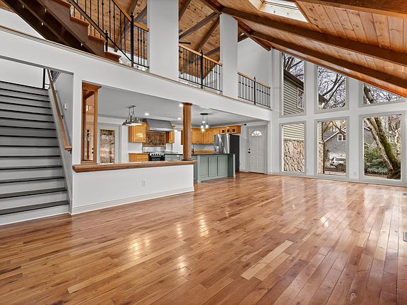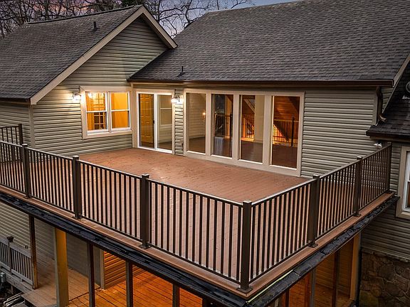 Contemporary 4-bedroom home with a large garage/shop and lake access! Located in the highly-desirable Waconda Point neighborhood, this home shares a street with some of Chattanooga's finest lake homes. Although there is no HOA fee, homeowners get access to the community boat ramp and the community lake lot. This home stretches over 3,700 square feet across several levels and has two additional bonus spaces in addition to the four bedrooms. The large lot is over an acre and is wooded and private. The street is quiet and the house has lots of room for entertaining and living. There is an upper deck and also a lower patio space in the back, which are perfect places to experience the serenity of the back yard and surrounding woods. The detached garage was built tall enough to accommodate a large fishing vessel. It's big enough for an RV, large boat or complete workshop. Really unique property. Book your private showing today!