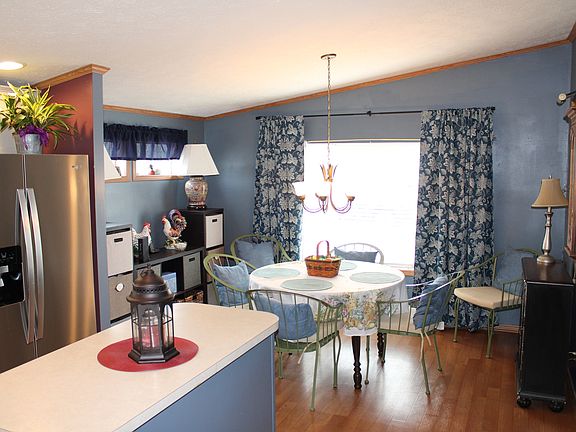 This lovely tastefully decorated home is just waiting for you! You'll Love the covered porch and attached garage with a service door. The living room opens to the kitchen which is wonderful when you have family or friends over! There are vaulted ceilings, crown molding, & wood laminate flooring. The kitchen features recessed lighting, freshly painted cabinets and crown molding and a center island. The owner just replaced the oven/range and refrigerator. The dining area features a large bay window and lets in so much natural light! Actually, there is a lot of natural light! Don't worry there are all new blinds and curtains if you want privacy. Recent upgrades include furnace, central air unit & newer roof. Everything in the house has been freshly painted! May I add Tastefully! The master bedroom is very spacious with a master bath. There is a patio in the backyard for your enjoyment! Wildwood South is a 55 & older community. Buyers application and park approval is required. The seller is a true Gardner. He put $3500.00 in the yard.