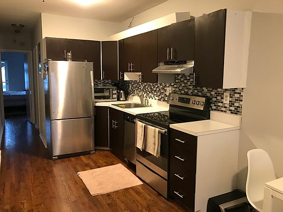 Modern 1 Bedroom Apartment featuring stainless steal appliances, outdoor space, hardwood floors and washer/dryer in basement. Close to light rail, bus stops, public parking garage and a quick walk to the Path.