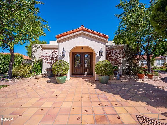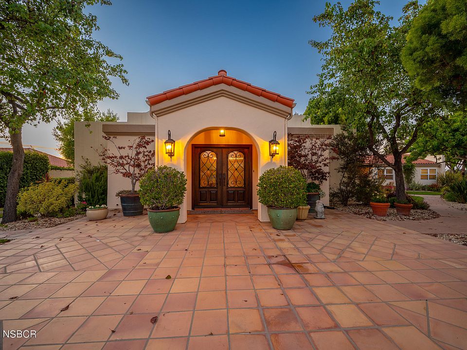 Discover this idyllic Santa Barbara style retreat in the coveted gated community of Elkhorn Estates in Orcutt, California. Tucked at the end of a cul de sac and backing to open land, privacy and serenity are the first words that come to mind when experiencing this unique property. Ideally situated on just over a half-acre lot and boasting 3,474 square feet of single story living, 3 bedrooms + bonus room, and 4 bathrooms, this home is truly a rare find. Enjoy sweeping archways, vaulted ceilings, saltillo tile and wood floors, and an abundance of windows to take in the breathtaking garden surrounding the entire home. The spacious kitchen includes a large center island, two sinks and a walk-in pantry. Entertain until your heart's content with an informal dining space off the kitchen, a large formal dining room, two living rooms and a spacious covered patio overlooking mature trees and sprawling lawns. A detached 3 car garage with back door access can house all your toys, and utilize the air conditioner to stay cool year round. In less than an hour drive you can find yourself in Santa Ynez, Santa Barbara, San Luis Obispo, and the sandy shores of Pismo and Avila Beach.