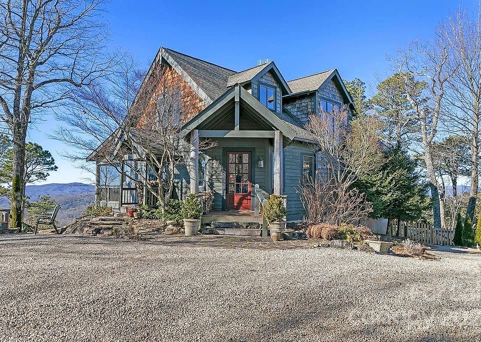 This thoughtfully designed home is positioned perfectly on one of the finest view lots in all of Western NC. With a 4 bedroom layout, sleeping loft and 3 living areas, there is plenty of room for the entire family. Situated on over 12 acres, this home offers unparalleled views from nearly every room. The design includes ample covered outdoor space to enjoy the beautiful Blue Ridge Mountains. Notable mountain peaks include Sassafras to the SW, Whiteside and Hogback to the West, Tennent and Devils Courthouse to the NW and Mt. Pisgah to the North. Inside you will find rustic accents blended flawlessly with modern updates. The floors are heart of pine and the fireplace is a Vermont Casting wood burning stove, capable of heating most of the home. This house was meticulously built, cared for and landscaped over the years. The vaulted ceilings provide plenty of natural light and the open floor plan is perfect for entertaining. Big Hill is bordered by Headwaters State Forest on two sides.