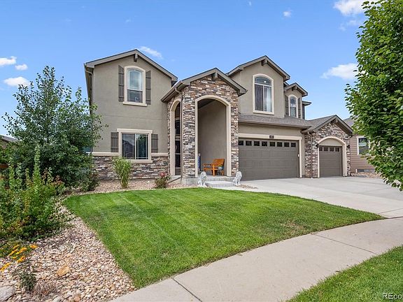 This house is amazing, sitting on a great cul de sac with access to a neighborhood only pool. Enter into a gorgeous foyer with formal dining (or grand piano room) on the left before you are blown away by the two story great-room with windows and natural light for days. Open kitchen, eat-in area, butlers pantry for a coffee bar or an it's 5 o'clock somewhere bar and a walk-in pantry make up the rest of the floor plan for entertaining and family time. Down the hall toward the three car attached garage, with new epoxy floor, is the first of seven bedrooms and the first of four full bathrooms. Main floor sleeping if need be, or an office. Upstairs is four more bedrooms, including the primary with 5-piece ensuite bath, extra loft space, another bathroom to share and laundry. Washer and dryer are included. One of the bedrooms upstairs has built-ins for whatever you need it to be. Office, craft room, playroom, etc. In the basement there the final two additional bedrooms that are currently being used for workout space and wind down space, plus a hangout area with games and movies galore. Both the front yard and the backyard are landscaped to a tee, and there is a deck right off of the eat-in area in the kitchen with a fire pit area below. Last bonus, the solar panels will be completely owned and stay with the home at time of closing. Right by cute downtown Berthoud, the house simply can't be beat!