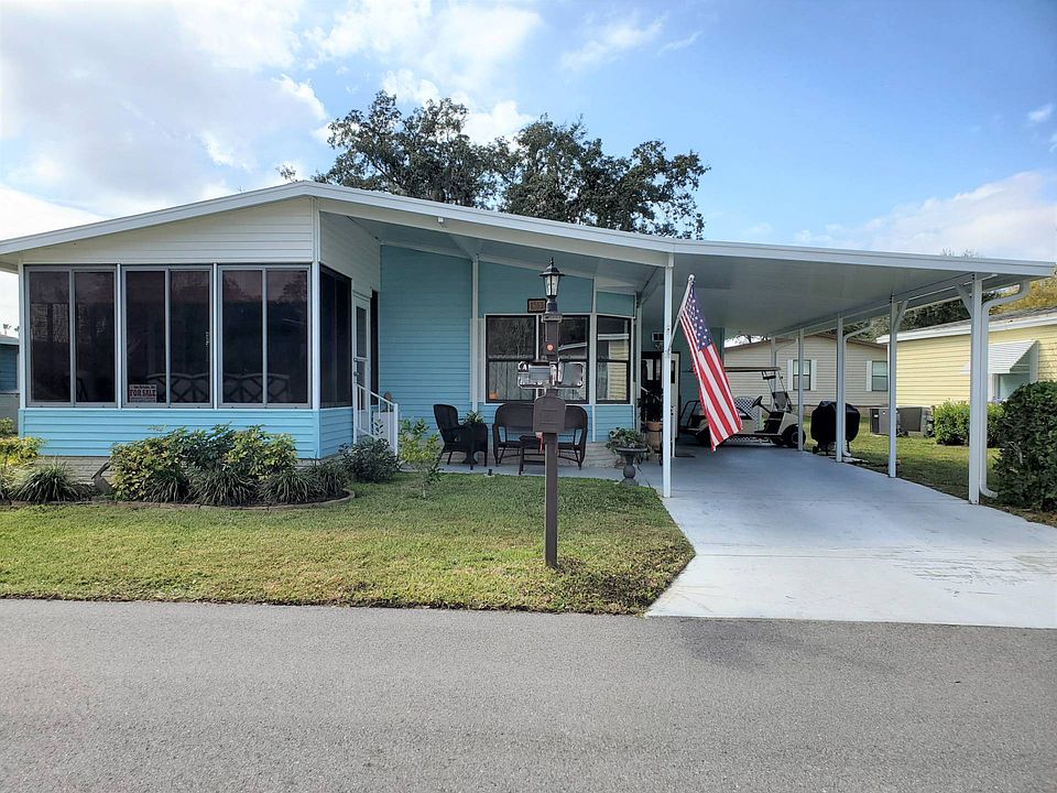 This 1989 MERI is extremely Neat, Clean, and updated with nice driveway and is situated ln the popular and much sought-after community of Swiss Golf and Tennis. This is a 55+, gated clean, which is extremely active, fun, and located in Winter Haven, Fl. The 2-bedroom, 2 bath home has a lot to offer including updated flooring, freshly painted, updated kitchen with quartz counter tops along with new cupboards with pullouts. This home has been extremely well taken care of and well done. The central air/heat was newly installed in 2020, the carport replaced in 2017. The home was freshly painted outside in 2021. As you walk through this home you will be impressed with how well this home has been taken care of. It looks as if they just painted yesterday, and everything is extremely neat, clean, and updated. The home is partially furnished with both bedrooms sets remaining (minus box springs and mattress). The bistro table and chairs also remain. You will find laminate flooring throughout the home with vinyl plank in both bathrooms and front Florida room. The kitchen appliances remain in the home along with a brand-new microwave. The home is not too big and not too small. You must see this home to appreciate how well kept this place is. This home has been shown several times before I even got the sign up. Places are selling very quickly in here and a place this well taken care of leaves you really nothing that must be done so it will get sold very quickly. Don't hesitate to long on this home. Take a close look at the video walk through and be sure to call for an appointment and get all your questions answered about this wonderful, active and fun community. 2022 Lot lease is $529.74 includes all the amenities of Swiss Golf and Tennis and Hidden Golf Club. Swiss Golf & Tennis Club is located on beautiful Lake Henry with opportunities to fish, go boating & enjoy the gorgeous sunsets. It is a highly active 55+ land-lease Golf community. There are 2 clubhouses, one that has just completed a million-dollar renovation, 2 pools, Hot tubs, an onsite Restaurant and Pub, Gym, card room, billiards room, library, pro shop for the 18-hole executive Golf course, tennis, shuffleboard, pickle ball, bocce ball and the list goes on. There is a strong entertainment committee which provides monthly shows, dances, dinners, tournaments, and bingo. Winter Haven, FL, is centrally located between both the Gulf and the East Coast beaches (1 to 1 1/2 hours away). The Orlando Airport is only 45 minutes away and so are many sports events, such as the Lakeland training camp. Disney World, Universal Studios and Legoland are all within 40-minute drive. There is a never-ending array of outlet malls for shopping and dining to suit any taste/budget. So, whatever you like to do for entertainment, Central Florida and Swiss Golf and Tennis is the place to live. Property address is 653 Century Lane, Winter Haven, Fl. 33881. Lot rent for 2022 is $529.74