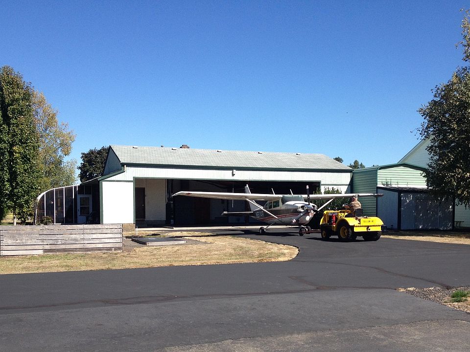BARGAIN Airpark Home in Independence, Oregon Own a house at the airport as inexpensively as a neighborhood in town. Walk out your kitchen door and step into your own airplane. This 1976 Rambler has endless abilities to accommodate the interests of every member of the family. From the moment one sets foot into the rustic ambiance of the cedar walled front room with its vaulted ceiling and exposed mountain lodge beams, the spirit of the Pacific Northwest comes alive. A cascade of volcanic rocks forms the hearth, with a roaring fire just a flick away. The simplicity of design and open floor plan provide modern atmosphere for entertaining family, friends, or business associates. Sliding glass doors connect the dining room to a 270 square foot solarium encircled with Rhododendrons, opening onto an outdoor patio. The kitchen is connected to the dining area with a seating bar, Corian countertops, Amana gas range, and Oak cabinets. Ceiling light boxes and a greenhouse window brings sunshine to the room any time of day. Adjacent to the kitchen is a walk-in pantry and laundry room. Out the back door, patio pavers surround six raised beds for vegetable gardens. Across the taxiway apron are planters for herbs, and a garden shed for lawn mowers, bicycles and garden equipment. Vehicle parking options abound with space for an airplane and two cars in the attached hangar/garage. Additionally, a 45-foot long RV Carport provides shelter for a motorhome, 13 feet wide and more than 12 feet high. A 32-foot wide driveway extends 80 feet from the carport and garage out to the widest street in the airpark, with room for parking on both sides of the street and ample space for vehicles to drive both directions simultaneously. There are airpark communities elsewhere in the country, but you will not likely find a public street to the front of every house and taxiway access to a public airport on the other side like Independence. Find the best of all worlds and fulfill the dream of an airplane in your own garage. Whether you fly around just for fun on the weekends, or commute to work by air, anything is possible. The runway at Independence is 3,000 feet long.