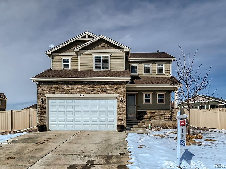 Gorgeous 2-story in a cul-de-sac with a huge back yard. This lot is the second largest in the neighborhood offering over a quarter acre. Great opportunity to own in the Conestoga subdivision without having to build - with the added bonuses of landscaping, 8 zone sprinkler system, fencing, window coverings, appliances, washer and dryer included. This 2-story 3 bedroom, 3 bath home has a small loft area, full unfinished basement with room to add two conforming bedrooms and a bathroom! Back yard is beautifully landscaped with Colorado Native River Rock, sprawling grass, and drip irrigation to the trees and to the 3 above ground garden beds. 240 volt outlet in the garage is ready for an EV charging station.