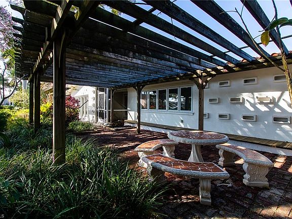 Former Rutenberg Model Home in prime location. This 4 Bedroom & Den, 3 Baths CBS Home is only a 2 mile walk from our local Yacht Club which offers you a public sand beach, pool, tennis courts, fishing pier and restaurant with live entertainment. This home offers a one of a kind private outdoor paradise with it's two pergolas and brick lined paths throughout a completely self sustained yard, filled with all native plants such as mango, key lime, Selenicereus grandiflorus and many many more...all on a 3-lot site. The interior features a formal living-dining room and separate family room layout with sliders to the screened in 34'x10 covered tiled lanai which leads to the 30'x15' pool. Additional interior characteristics include a 340 sq ft Den with custom book shelves, walk in pantry, over-sized laundry room with sink and bathroom, coat closet and crown molding in the living areas. Terrazzo flooring throughout the home except in the den and laundry-room. Almost all the windows have been replaced PLUS all of them have manual shutters in the extra storage by the carport. The roof was replaced with clay tiles in 2004. Buyer Home Warranty included. Take a look!