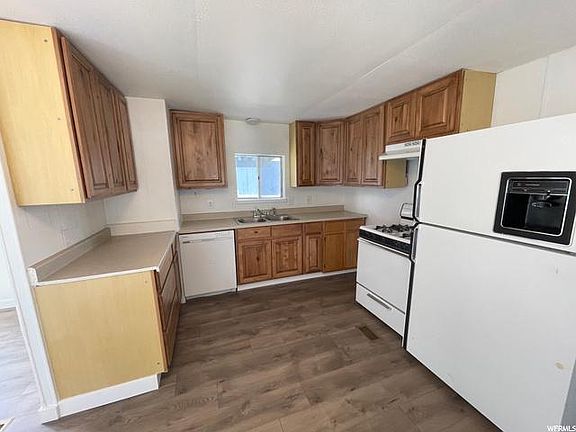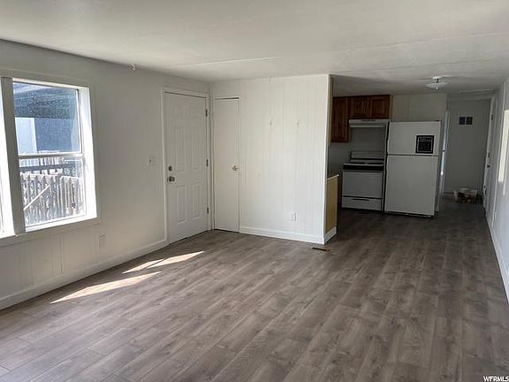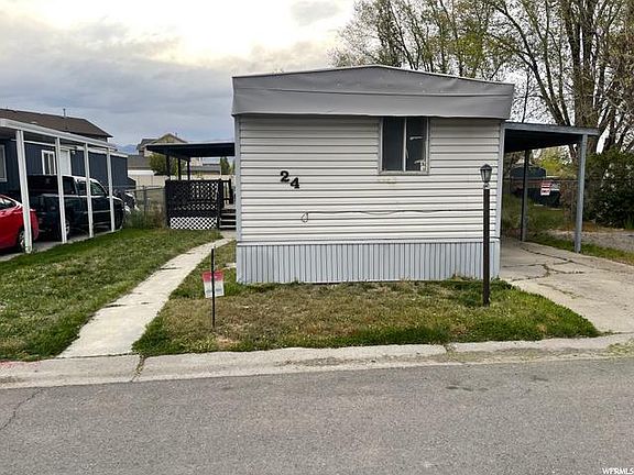 Trailer #24 in Grantsville Village MHP. Updated trailer - New flooring -New paint - updated bathrooms. Buyer must get approved to live in the village MHP. 2 Beds - 2 Baths one at each end of the unit - perfect for roommates. Pad fee is $625.00. The exterior measurement is 16' x 71'. Improved cabinets from the original!