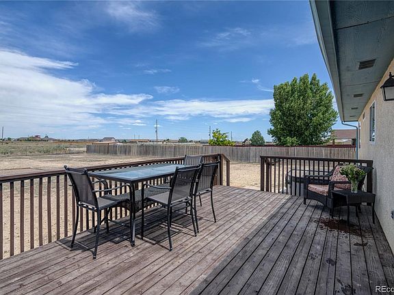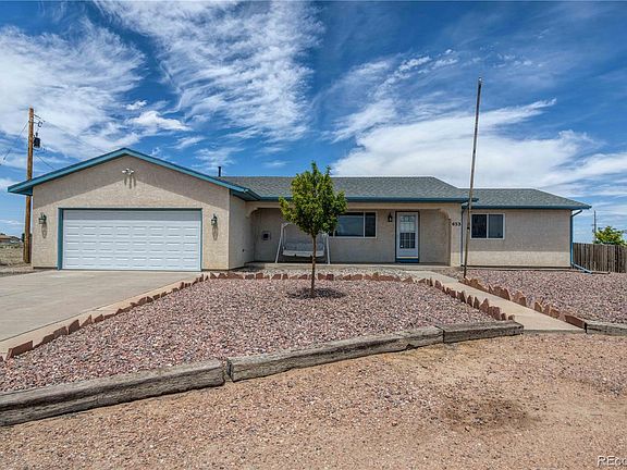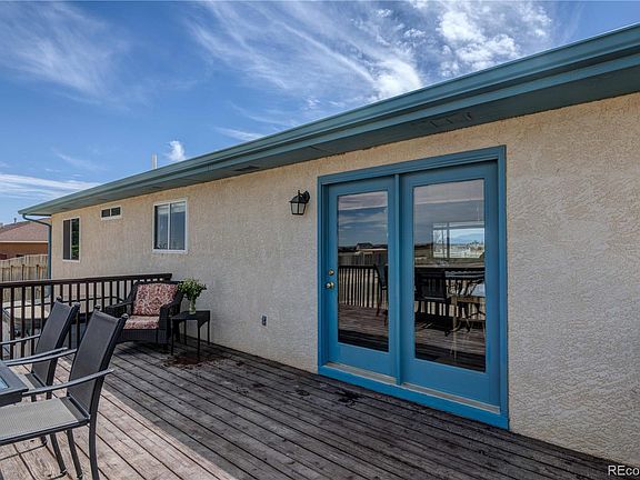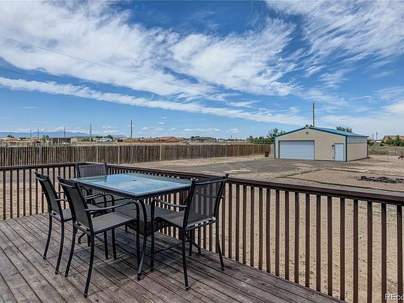 This home has so much to offer! Mountain views from the front porch and the back deck! An open living and dining area on the main floor with high ceilings and French doors to the back deck. The back deck has views of Pikes Peak and a hot tub to relax and enjoy the views! The main floor has 3 bedrooms and two baths set up in s split plan layout offering privacy for the master suite. All the bedrooms have walk in closets. Laundry is on the main floor with a storage closet and tile floors. The basement has a guest en suite, a large family room and an extra room. There is also a storage closet under the stairs. This home has a radon system, sump pump, tankless water heater, and a/c. There is a detached Garage/Pole Barn with concrete flooring and electric. It has a large roll up door as well as a side door. There is a RV parking and a double gate on the side of the house for entrance to the Pole Barn/detached garage