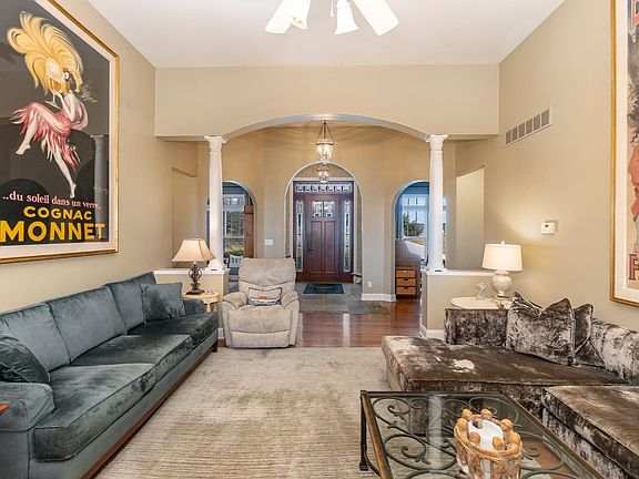 Welcome to this gorgeous home in Galena Meadows subdivision! Quality abounds from the stone flooring in the foyer, hardwood floors and the 14 foot ceilings in the main living areas. Arched doorways lead to a separate dining room and a home office. The kitchen is light and airy with a large pantry and a breakfast nook that walks out to one of the decks. The spacious main bedroom is full of natural light and a tray ceiling. The ensuite bath opens to the bedroom with double doors and has a large tub, walk-in shower and a large walk-in closet. French doors overlook the 42 x 20 in-ground pool with a slide and key-operated automatic cover. The basement is partially finished w a 26 x 30 rec room and a fourth bedroom. There's also plenty of dry, unfinished space in the basement lined with shelving for storage. Recent upgrades include a new furnace and air conditioner, a new garage door and opener, newly painted exterior. All this on a beautifully landscaped, one acre lot.