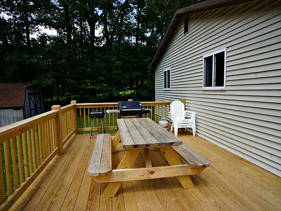 Beautiful Cape Cod home sitting on a picturesque 1.8 acres. This home offers three bedroom, 3 full baths, a great kitchen with an island, nice level yard, covered front porch, large back deck not to mention a partial finished basement. With a wood burning fireplace, wood stove and fire pit out back. A two car garage, large shed and a spacious mud room makes this home warm and inviting for a full time home or as currently used as a vacation rental property.