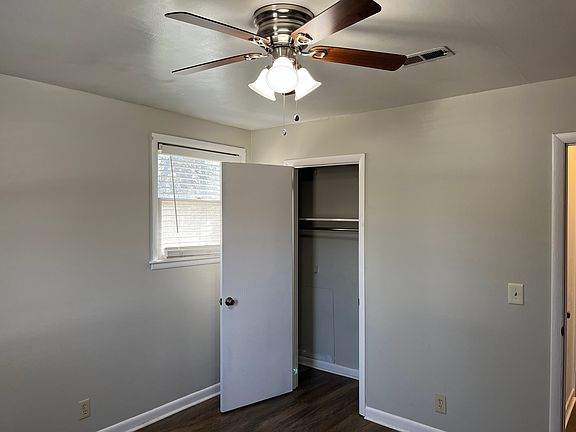 Tucked away at the end of a quiet cul-de-sac, this charming duplex offers both comfort and convenience. Enjoy off-street parking for two cars and a welcoming front porch perfect for relaxing. Inside, you'll find brand-new flooring throughout, including the bathroom, along with freshly painted walls in every room. Each bedroom is equipped with a ceiling fan and light for added comfort. The kitchen boasts newly painted cabinets with updated hardware, a brand-new refrigerator and range, and a lovely view of the private backyard, which backs up to serene trees. A dedicated laundry area with washer and dryer hookups is conveniently tucked behind closed doors. Additional storage is available in the 10x10 shed out back. With central air and heat, this move-in-ready home has everything you need! 6 MONTH OR 1 YEAR AVAILABLE