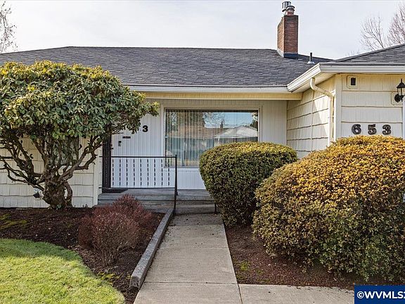 Charming 1954 single-level home in central Salem! This 3-bed, 2-bath gem features beautiful hardwood floors, a cozy gas fireplace, and a spacious, well-manicured fenced yard. Enjoy year-round outdoor entertaining under the expansive covered patio. Conveniently located near shopping, dining, and more! A perfect blend of classic charm and modern comfort—don’t miss this one!