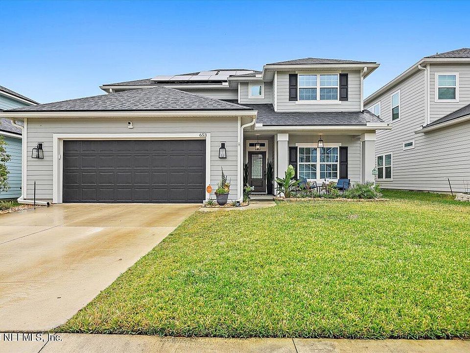 Make this house yours with an assumable 3.99% VA loan! This stunning property with solar panels in Wilford Preserve offers the epitome of modern living combined with a coziness that instantly makes it feel like home. Built in 2022, this home boasts a plethora of upgrades, making it a true gem in the neighborhood. Spanning two levels, this spacious abode features five luxurious bedrooms, with the primary suite conveniently located on the first floor for ultimate comfort and privacy. The secondary living room upstairs provides added versatility, perfect for relaxation or entertaining the kids! Embracing eco-conscious living, this home comes equipped with solar panels, offering both sustainability and cost efficiency. The integration of WiFi-enabled appliances ensures seamless connectivity and convenience in every corner. Nestled within a natural gas community, this residence offers not just modern amenities but also the benefits of efficient energy usage. The screened porch and privacy fence create a tranquil outdoor oasis, perfect for unwinding or hosting gatherings. As part of the homeowner's association, internet services are conveniently included, making connectivity hassle-free. Enjoy the community's serene ambiance while staying connected to the world. This home embodies contemporary elegance, thoughtful design, and a harmonious blend of modernity and comfort. Don't miss the opportunity to make this stunning property your own and experience the unparalleled lifestyle it offers in Wilford Preserve.