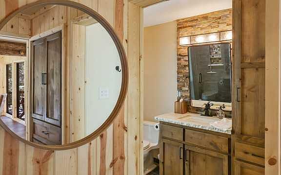 This home was totally remodeled inside by the current owners completely new kitchen and bath, flooring, paint and much more. They also remodeled the bunk house which is a 1 bedroom with a 3/4 bath and approx an additional 200 sf of living space. The main house has an open floor plan a mix of knotty pine and dry wall a beautiful wood log beam in living room and lots of windows to take advantage of all the light and the trees/woods/animals. Kitchen has granite counters, newer stainless steel appliances, cabinetry, plumbing it is all ready for you to move right in. Beautiful hardwood floors. A small carport area to store your side by side or just covered storage. Furnishings not included but some may be purchase separately outside of escrow.
