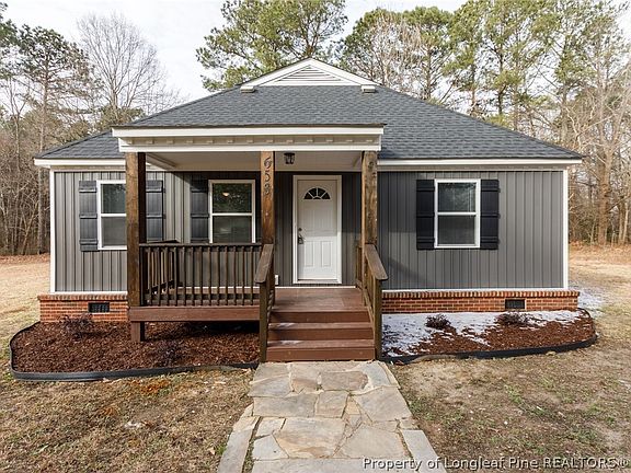 Quiet, country living with 10 acres and privacy await you here! Close to Sanford / NC-87 with a potential for hunting. Near Raven Rock State Park. Renovation includes all new roof, HVAC, vinyl siding, floors, paint, kitchen, bathrooms, fixtures, blinds, electric panel, well pump, and doors! The front porch with wood beams and fresh landscaping pulls you inside. L shaped kitchen overlooks the open floor plan and comes with two tone cabinets, granite counters, SS appliances, and subway tile backsplash. Bonus room upstairs. Covered deck overlooks much of the land. So much to love here--make an offer today before it's gone!