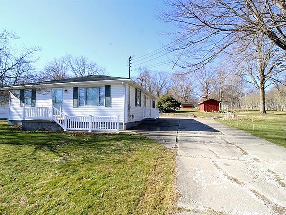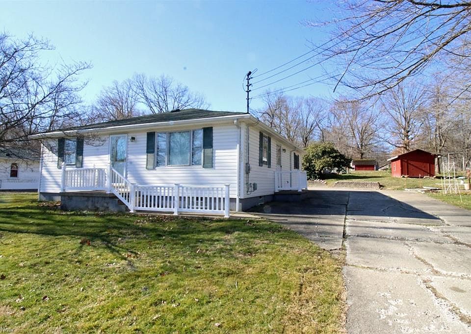 If you are looking for a ranch on almost 1.5 acresâhere it is! Vinyl sided home has a great view of Wingfoot Lake across the street. There are 2 lots totaling 1.47 acres that is offered. A 48x32 outbuilding is located towards the back of the lot and has inside a 32x16 workshop that has a woodburning stove for heat and has electric. If you need storage this should do it! There are a couple other sheds on the lot for added storage. Behind the home is a 3-car garage with opener and electric. Both the front door and side door have small porches with vinyl railings. This used to be a 3-bedroom home. The owners had removed a wall to make an oversized bedroom. It would be easy to add a wall to split back into 2 separate bedrooms. The oversized kitchen has lots of cabinets and counterspace as well as plenty of room for a kitchen table. The living room is very bright and offers a view of Wingfoot Lake across the street. The home needs some TLC and is priced to sell. Being sold as-is.