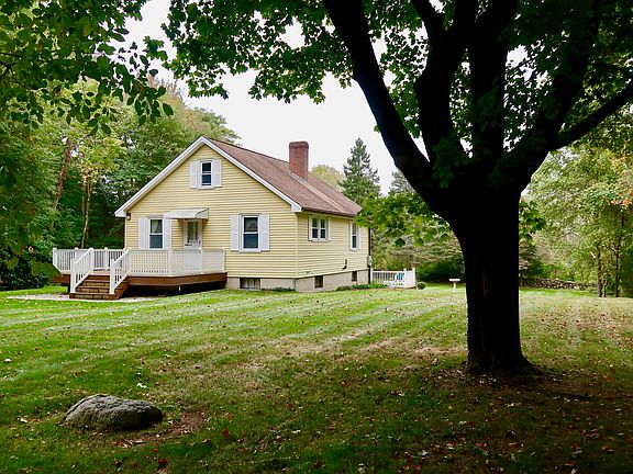 This charming cozy home was built in 1941, by the original owner, with careful attention to detail. The original craftsmanship is still evident and in impeccable condition. Since then only one other owner has occupied this lovely home. It is set back from the road on a beautiful 2.9 acre parcel of land, offering plenty privacy. When you enter the front door an inviting entrance welcomes you with an enclosed porch that provides a cozy sunlit room to lounge in. The original rare white oak hardwood floors immediately draw your attention and provide much warmth throughout the home. After the porch you enter the living room with a pleasant fireplace, then you walk into a square hallway that is at the center of the house. The kitchen, bathroom, two bedrooms and a staircase to the attic is off of the hallway. The attic is unfinished and is used for storage, but offers the option to finish it for more living space. There is a back door off the kitchen that leads to a deck; also off the kitchen is a staircase that takes you to the garage and basement where the washer and dryer is. The house is wired for a portable generator, which comes with the house. There is also a shed. The house has oil heat, septic and well. The exterior is aluminum sided. Windows, well pump and hot water heater have been replaced.