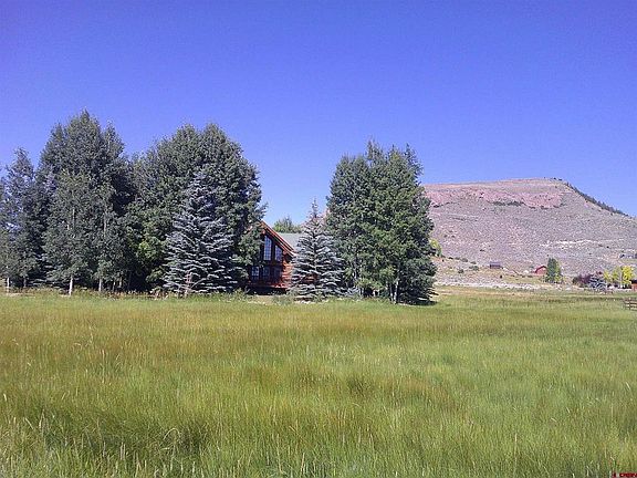 Beautiful Engelmann Spruce log home surrounded by huge magnificent Blue Spruce, Pine and Aspens with irrigation ditch on the property for hay crop or horses! A one owner, one of a kind home that was especially designed for this nearly 4 acre meadow lot with most outstanding views and masterfully designed for entertaining and comfort. Open concept with spacious rooms in this outstanding open concept floor plan. Beautiful kitchen with fully restored Majestic electrified antique range, plus double oven, extensive counter tops and bar seating. Very luxurious baths. Lots of antique lighting in the home and custom finishes. Some antique furniture in home may be negotiable or "For Sale". Beautiful custom built two way fireplace with custom mantels. Many outstanding features in this home which you need to see to appreciate. Features also include hardwood floors, grand staircase, high ceilings, expansive windows, second level loft with full bath, bedroom and large storage area. You will appreciate the love the quaint character designed by a true master craftswoman.
