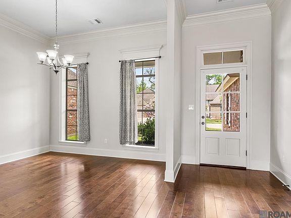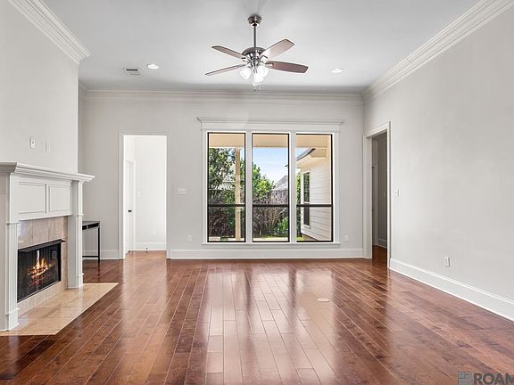Welcome to the popular University Villas neighborhood! You will love this 3BR, 2 BA home that boasts an open floor plan combining the living room, dining room and kitchen together to create a wonderful entertaining space.The high ceilings and large windows open the space up even further with ample sunlight and ceiling fans throughout. The living room is anchored by a gas fireplace with a mantle for cozy fall and winter evenings! The kitchen has modern white cabinetry, granite countertops, stainless steel appliances, and a gas range. The primary bedroom is large and has a huge en suite bathroom with dual vanities, a soaking tub and walk-in closet. All of the bedrooms have brand new carpet! Extra concrete pads have been added to the backyard for BBQ and crawfish boils. This 2-car garage home is set up for easy living with very little yard work required. The easy upkeep would also make it a great investment property for your portfolio or for your college aged kids. The neighborhood is gated and has a community pool, walking trails, gorgeous lakes and is a very short distance from LSU. Home is in flood zone X so no flood insurance required! Schedule your showing today!