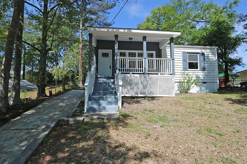 Charming remodeled ranch style bungalow with rocking chair front porch in City of Marietta with great access to the highway! Kitchen features new white cabinets with island and granite counter tops, new SS range and microwave. Floorplan was opened up to family room. Freshly painted and newly refinished hardwoods, newer roof, double pane windows, updated electrical! Master on main with bath that features an ensuite bath and large double closet doors. Updated secondary bath off the hall. Large back yard with two ways of access the parking area which is large enough to store a boat or multiple cars as well as a storage shed. Rear patio off the back door of the home. Minutes to the Marietta Square, Kennesaw Mountain, and KSU campus.