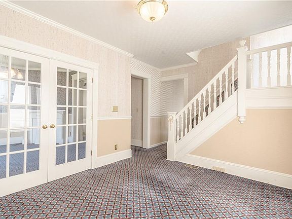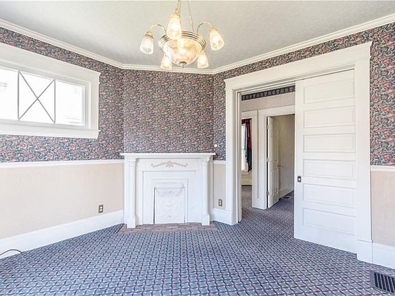 This 2 story home is currently being used as a commercial office but could be converted back to a full time residence and make a lovely home with a possible 6 bedrooms! Large front entryway that opens to the gorgeous living room with FP, 2 bedrooms off the hallway, and rear room (used to be kitchen area) with half bath all on the main floor. Upstairs offers a large landing area with built in desk, 4 additional bedrooms, and a full bath. There is also a walk up attic and full basement and large off-street gravel parking lot in rear.