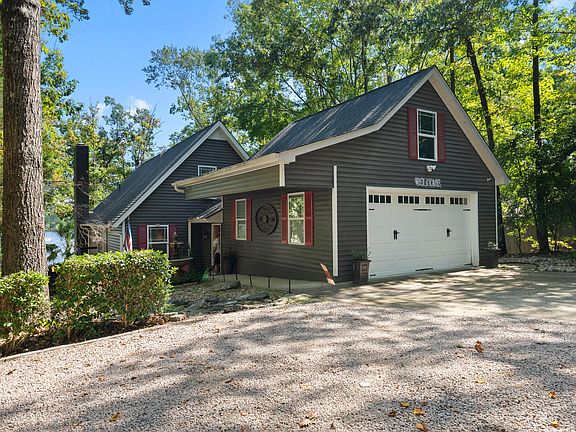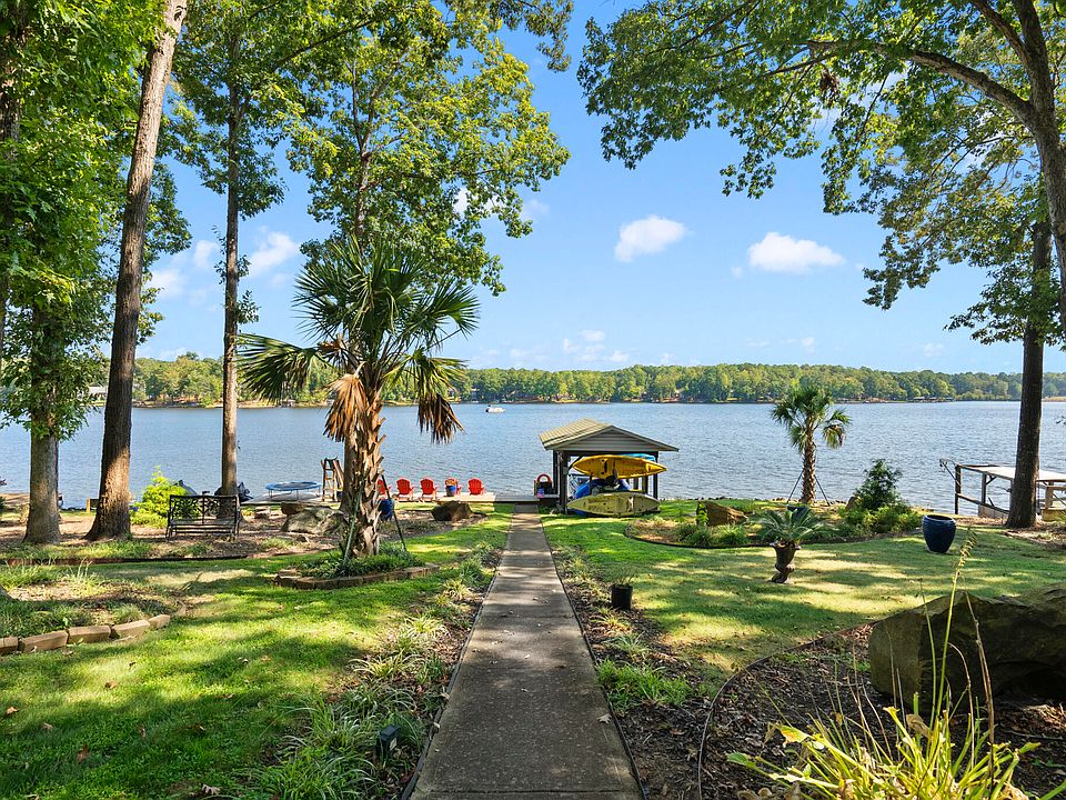Exceptional Lakefront Living Awaits! Welcome to your picturesque waterfront retreat, where nearly 3,000 square feet of thoughtfully designed living space meets the ultimate in lake life enjoyment! Perfectly situated on a generous, wooded and beautifully landscaped lot with irrigation and water fountain entrance, this home offers both privacy and convenience. Step inside to find 3 spacious bedrooms that live like 5, with 3 full baths, a main-level primary ensuite, and versatile bonus, office, and flex rooms to suit your lifestyle. The bright and open interior boasts fresh paint, new kitchen countertops, LVP flooring and a stunning new picture window framing lake views. Formal and casual living and dining spaces offer flexibility, while the casual den with gas log fireplace and built-ins creates a cozy gathering spot. Expansive kitchen is a chef's dream with abundant built-ins, dual island and endless room for entertaining. Outdoors is where this home truly shines! A bulkhead wall secures your shoreline, while a sundeck with swimming ladder, covered boat dock, jet ski parking and fire pit invite endless fun. Relax year-round in the covered hot tub or unwind on the screened porch and grill deck overlooking the lake. Community amenities elevate the experience with golf, mini golf, shuffleboard, horseshoes, volleyball, basketball, pavilion fitness, playground, beach, and a convenient boat launch. Peace of mind comes easy with recent upgrades: roof (5 years), HVAC (3 years), water heater (3 years), plus all the fresh interior updates including lighting & plumbing fixtures. This home isn't just a place to live—it's a lifestyle. Come experience exceptional lakefront living today!!