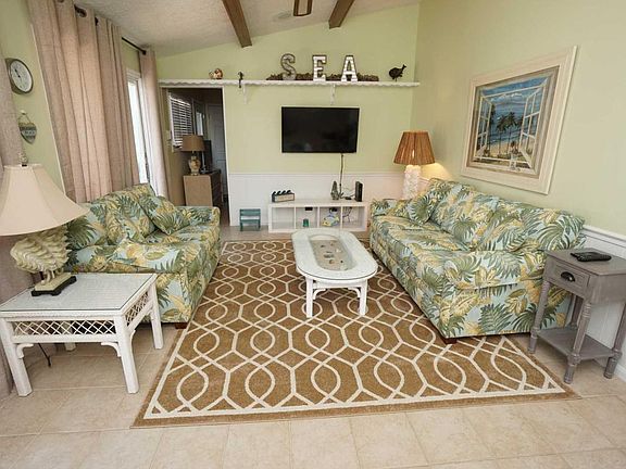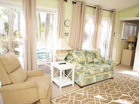Fantastic location and wonderful corner lot! This 2 bedroom 1.5 bath Venture Out home is spacious and tastefully decorated. Nice size living room and kitchen and great outdoor space that's just perfect for grilling and relaxing after a long day at the beach. Just bring your swimsuit and get ready to relax. Venture Out has 300' on the beautiful pristine beaches of the Gulf of Mexico and 1,000' on the Grand Lagoon. Venture Out has something for everyone. With two salt water pools (one heated), fishing pier, boat ramp, mini golf, children's play ground and much more.