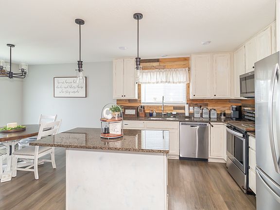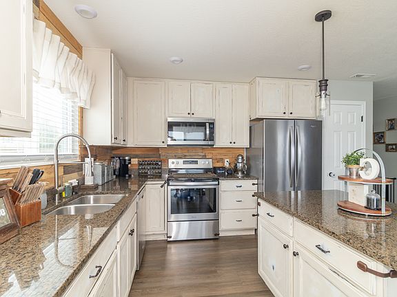 This immaculate home boasts numerous modern updates, blending style and functionality. The kitchen and bathrooms feature stunning granite countertops, refinished cabinets, and upgraded hardware. The living spaces showcase upgraded carpet and durable vinyl plank flooring, complemented by updated light fixtures and ceiling fans throughout. A custom wood accent wall adds character to the living room, kitchen, and garage. The garage is insulated, drywalled, painted, and includes a hanging overhead storage rack for added convenience. Additional updates include a sliding door feature in the laundry room, a privacy fence with enhanced landscaping, and a glass/screen storm door at the front entry. Other recent upgrades include air duct and dryer vent cleaning (2022), a new vent cover, refinished bathroom vanities, updated outdoor light fixtures, and a fresh coat of paint throughout. With meticulous attention to detail, this home is move-in ready and perfectly designed for comfortable living.
