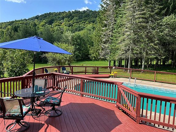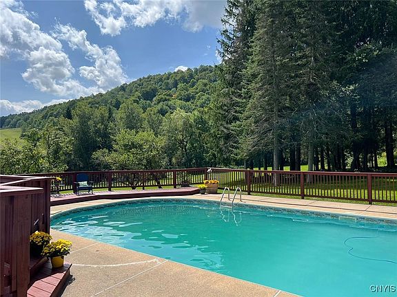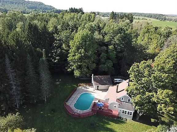 MAGNIFICENT SEVEN! Acres that is...This beautiful 3 bedroom 2baths home is located in a dream setting of little over 7 acres of rolling hills. About 2 acres is mowed; the rest is left for you to discover; hike, ride, hunt or swim in your inground swimming pool. The detached 2 car garage has a 3rd overhead door opening to the back yard, so bring the toys and let the fun begin. As an added bonus there is a working wood stove and a fridge in the garage. Entering the home from the driveway you will walk through a huge mudroom area into a beautifully remodeled kitchen with dove shaker cabinets, stainless steel appliances and granite countertops. There is a full bathroom, a giant living room, a formal dining room and a light filled sunroom on the main level. The second floor has 3 bedrooms, a full bath and ample storage. The home's heating system has been converted from oil to propane with a new high efficiency boiler and on demand hot water heater. New roof on the main house and new siding in 2023. The home received some new windows, new front and side entrance doors, new electric entrance and an overall beautiful update. There is a barn for extra storage. Seller is related to broker.